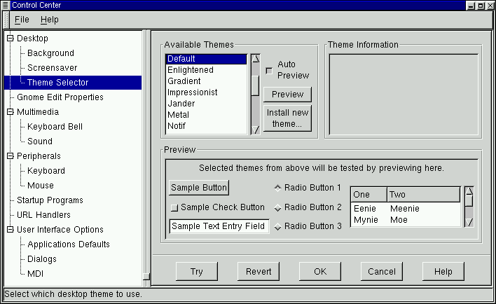 Working with the Control Center simply requires you to select a capplet from the menu on the left and double click on it. Once this is done, the workspace will change, allowing you to configure the item.